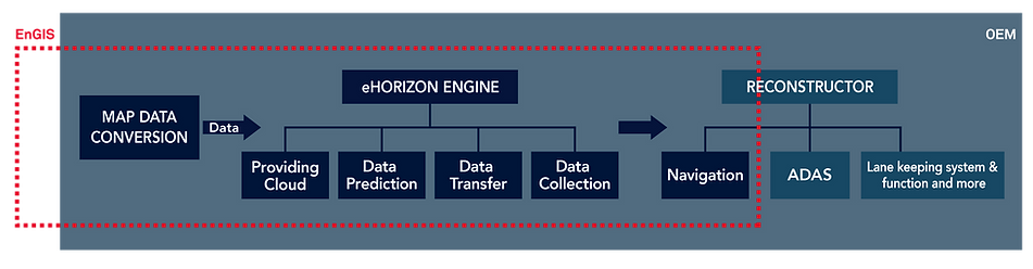 EnGIS´Â OEMÀÇ µ¶Á¡ Æ÷¸ËÀ» ±â¹ÝÀ¸·Î HD Áöµµ µ¥ÀÌÅÍ¿Í ADAS Áöµµ µ¥ÀÌÅ͸¦ º¯È¯ÇÏ¿© eHorizonÀ» »ý¼ºÇÕ´Ï´Ù. EnGISÀÇ eHorizon ¼Ö·ç¼ÇÀº ¾ÖÇø®ÄÉÀÌ¼Ç Á¦ÀÛ¿¡ ÇÊ¿äÇÑ º¯È¯ ¿£ÁøÀ» Á¦°øÇÕ´Ï´Ù.